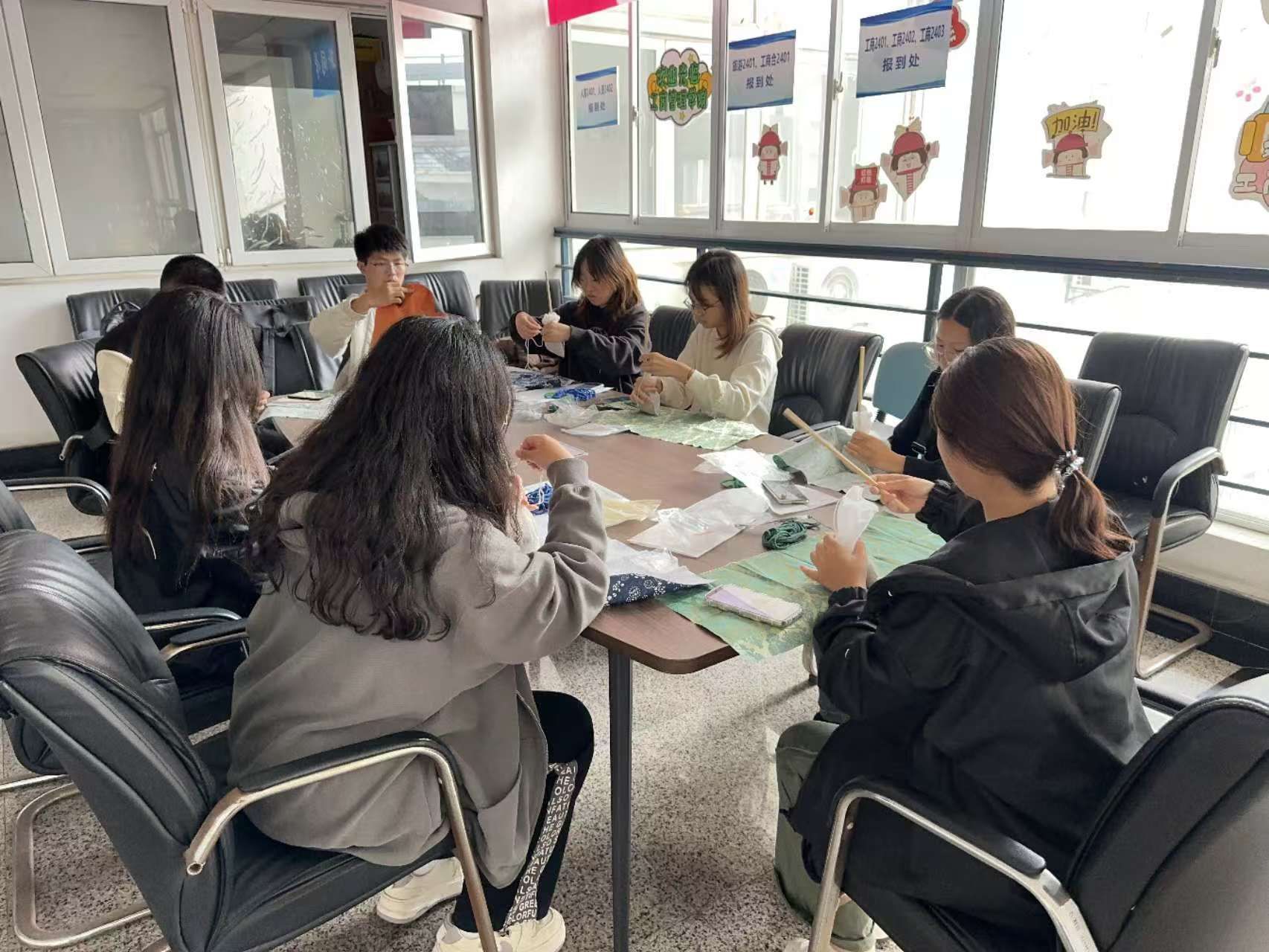 公共管理学院志愿者前往银城君颐东方护理院,与老人共赏秋色,共度重阳。志愿者们将准备好的五颜六色的扭扭棒和精挑细选的绿叶依次分发到在座的每位老人手上,与老人们一起制作扭扭棒花和树叶拓染。老人们一边笑着敲动手中的小锤,扭着毛茸茸的扭扭棒,一边和志愿者们唠嗑闲聊。